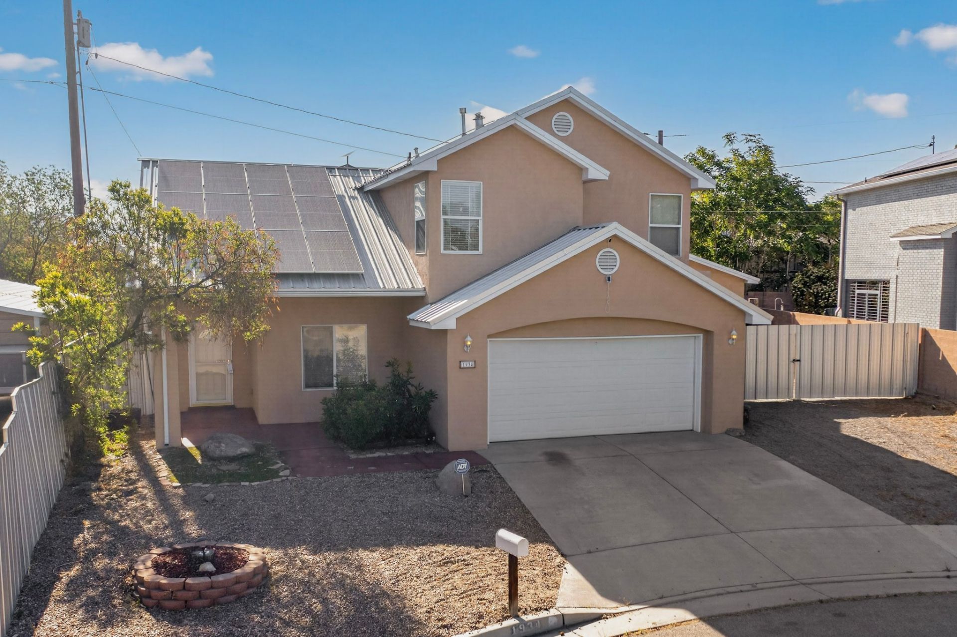 Welcome to 1934 Bryn Mawr Dr NE, a rare opportunity in the highly desirable UNM area, just minutes from UNM and UNM Hospital. This 4 bed, 3 bath home, built in 2002, sits on an oversized corner lot at the end of a cul-de-sac, offering space, privacy, and flexibility. The spacious primary suite features a jetted soaking tub, separate shower, and private balcony with breathtaking Sandia Mountain views. One of the detached garage/workshops is being converted into a ~450 sq ft casita (including bathroom), ideal for rental income, guests, or a private office, bringing total potential living area to approximately 2,358 sq ft upon completion. The backyard features low-maintenance landscaping, turf, multiple areas to relax or entertain, plus an above-ground hot tub, with ample parking available. Inside, the home offers a warm and functional layout with ceramic tile throughout, a cozy fireplace, and an updated kitchen featuring modern countertops, backsplash, and a built-in workspace. Large windows provide abundant natural light, creating a bright and inviting living environment. Central forced-air heating and refrigerated cooling ensure year-round comfort. The property backs to a freeway corridor; however, a substantial privacy wall helps buffer noise while still allowing convenient access to major roads and nearby amenities. In addition to the structure being converted, the property also includes another detached garage/workshop, ideal for storage, hobbies, or additional parking. The home also features fully paid-off solar panels, helping reduce utility costs, and improve overall energy efficiency. Closing to be contingent upon completion of the casita conversion. This property presents a unique opportunity for buyers seeking flexibility and versatility in a prime UNM-area location.